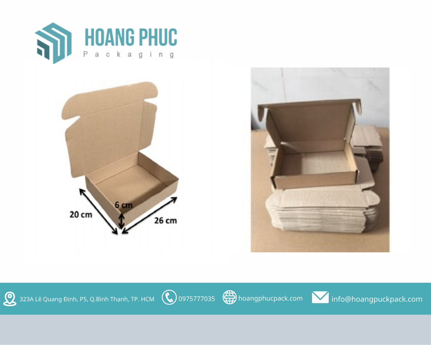 Hoàng Phúc Pack chuyên sản xuất, nhận báo giá và đặt hàng hộp carton thiết kế uy tín tại TP. Hồ Chí Minh. Dịch vụ của chúng tôi hứa hẹn sẽ đem đến một trải nghiệm tốt, giá cả cạnh tranh cũng như quy trình đóng gói vận chuyển đầy đủ và đúng hẹn nhất. Mọi quy trình từ đặt hàng, sản xuất đến giao hàng đều nhằm đến mục tiêu bảo vệ lợi ích khách hàng.