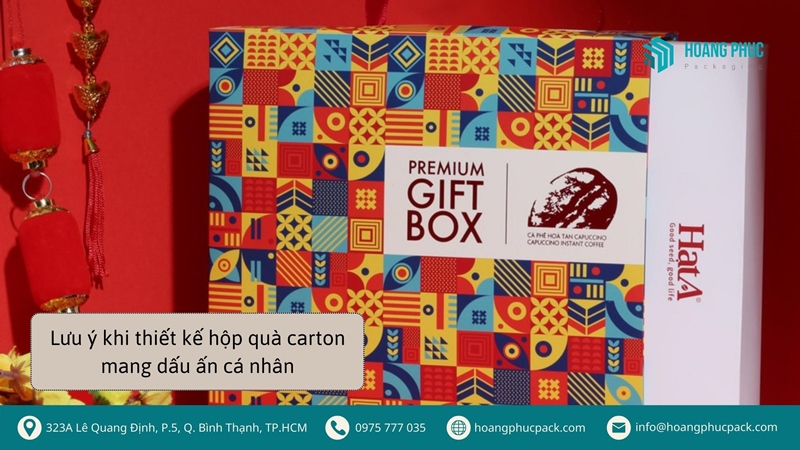 Thông tin trên hộp quà carton đã đủ chưa, căn chỉnh, sắp xếp bố cục có hợp lý không, logo có đặt ở nơi dễ thấy không, phông chữ không khó đọc quá chứ? là những câu hỏi doanh nghiệp phải tự đặt ra khi thiết kế bản in cho hộp quà carton. Rà soát kỹ càng tránh lỗi chính tả hay thông tin bị sai, lựa chọn màu sắc khéo léo, có tính toán chứ không theo cảm tính. Màu sắc nên đồng bộ và đi theo bộ nhận diện thương hiệu để tăng khả năng nhận biết về sản phẩm và doanh nghiệp.