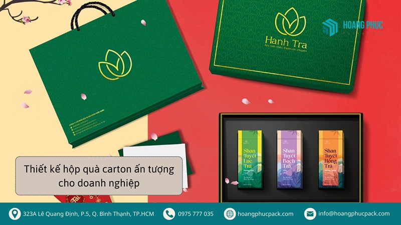 Văn hóa tặng quà ngày càng được nhân rộng, không chỉ cá nhân tặng quà cho cá nhân mà còn có tổ chức tặng quà cho cá nhân nhằm mục đích thương mại. Thiết kế hộp quà carton khi ấy vô cùng quan trọng vì nó ảnh hưởng đến việc khách hàng sẽ ghi nhớ thương hiệu của bạn. Hoàng Phúc Pack cung cấp cho bạn giải pháp thiết kế hộp đựng quà carton ấn tượng nhất để các doanh nghiệp tự tin vươn tới mục tiêu cao nhất trong hoạt động kinh doanh của mình.