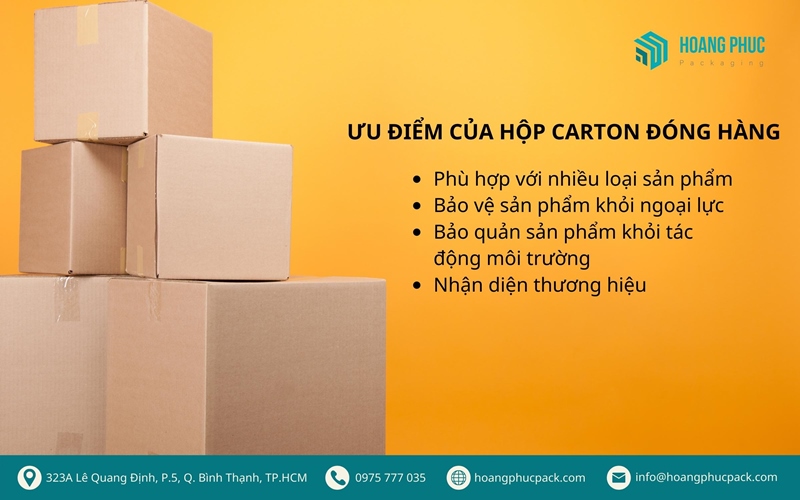 Hộp carton đóng hàng được thiết kế phù hợp với mục đích đóng gói, bảo quản và vận chuyển hàng hóa. Chính vì vậy, ưu điểm của hộp cũng xoay quanh hỗ trợ các công việc trên.