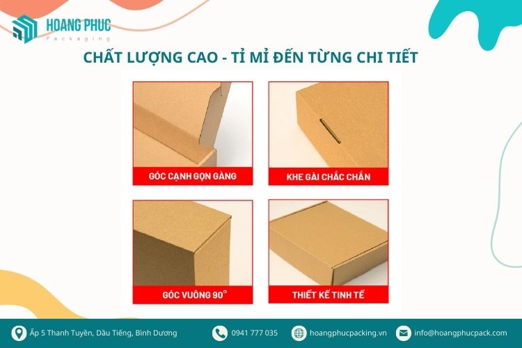 Ngoài ra, Hoàng Phúc Pack có sản xuất hộp carton đựng phụ kiện theo kích thước yêu cầu, thiết kế nắp gài, nắp kéo, hộp đối khẩu, âm dương theo mong muốn của khách hàng. Chi phí đặt riêng không quá khác biệt so với mua hàng có sẵn, chỉ sẽ mất của bạn thời gian chờ đợi hơn. Vậy nên hãy cân nhắc liên hệ với Hoàng Phúc Pack để được tư vấn thêm nhé!