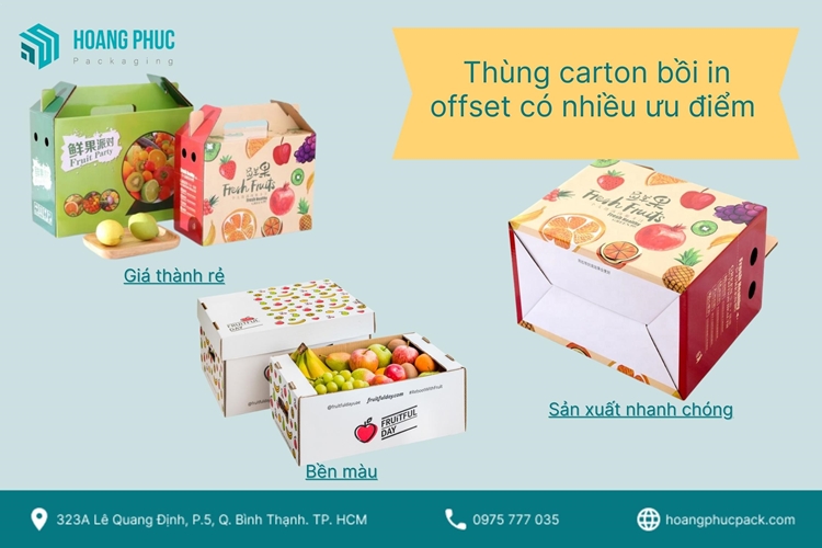 Thùng carton bồi in offset cho chất lượng hình ảnh sắc nét, chân thực.