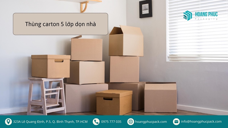 Những công ty vận chuyển nhà là doanh nghiệp quen thuộc với loại thùng carton này nhất, những món đồ to và nặng không thể giải quyết bằng thùng carton 3 lớp được ưu tiên sử dụng thùng 5 lớp. Những hàng gia dụng, đồ nội thất, bàn ghế được đóng gói và những chiếc hộp này.