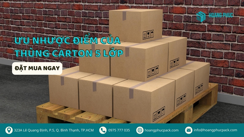 Với sự phát triển của sản xuất và đóng gói hàng hóa, những sản phẩm kích thước và trọng lượng lớn đã được giải quyết bởi thùng carton 5 lớp. Vậy loại thùng 5 lớp này khác gì với những thùng carton khác, ưu nhược điểm của chúng là gì? Cùng Hoàng Phúc Pack tìm kiếm câu trả lời qua bài viết dưới đây!
