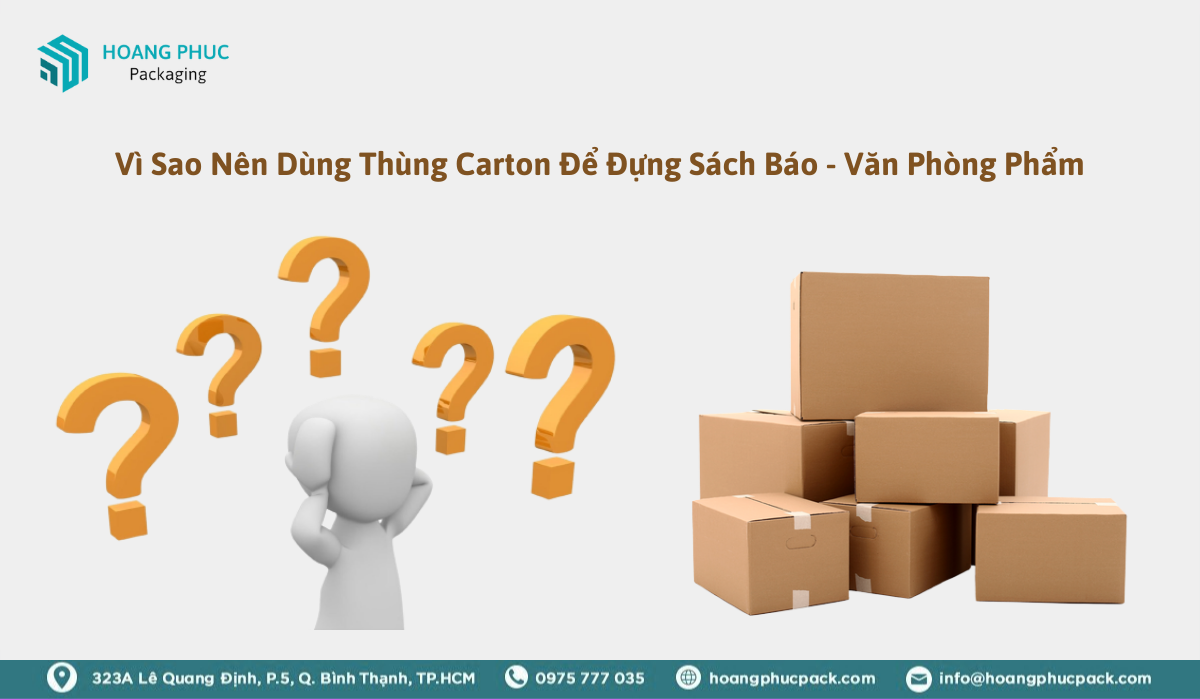 Thùng carton là một trong những sản phẩm không thể thiếu hiện nay, đóng vai trò quan trọng trong nhiều ngành nghề và lĩnh vực như: đóng gói hàng hóa, đựng hàng xuất khẩu ra nước ngoài, làm hộp quà tặng... Không những thế, thùng carton còn được sử dụng để đựng sách báo – văn phòng phẩm. Vì sao nên dùng thùng carton đựng sách báo – văn phòng phẩm? Hãy cùng Hoàng Phúc Pack tìm hiểu ngay trong bài viết này nhé!