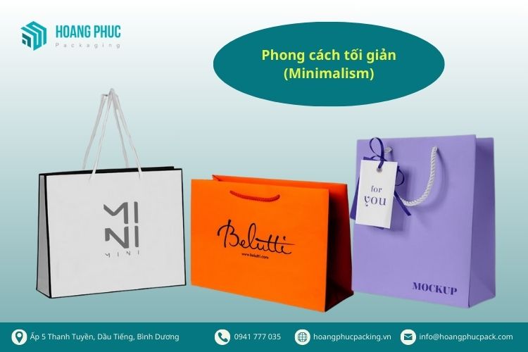 Thiết kế tối giản (Minimalism): Xu hướng tối giản với những đường nét đơn giản, màu sắc trung tính và thiết kế không cầu kỳ đang thịnh hành. Những chiếc túi giấy với logo đơn sắc hoặc những hình vẽ tay nhẹ nhàng có thể tạo nên sự tinh tế và hiện đại.