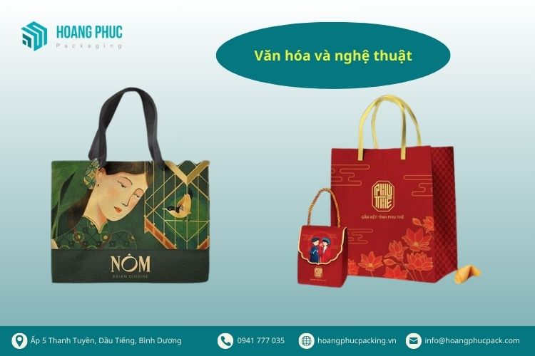 Thiết kế túi giấy năm 2024 còn chứng kiến sự kết hợp tinh tế giữa nghệ thuật và văn hóa địa phương. Các doanh nghiệp đang tận dụng yếu tố này để tạo nên những sản phẩm độc đáo và đậm chất văn hóa.